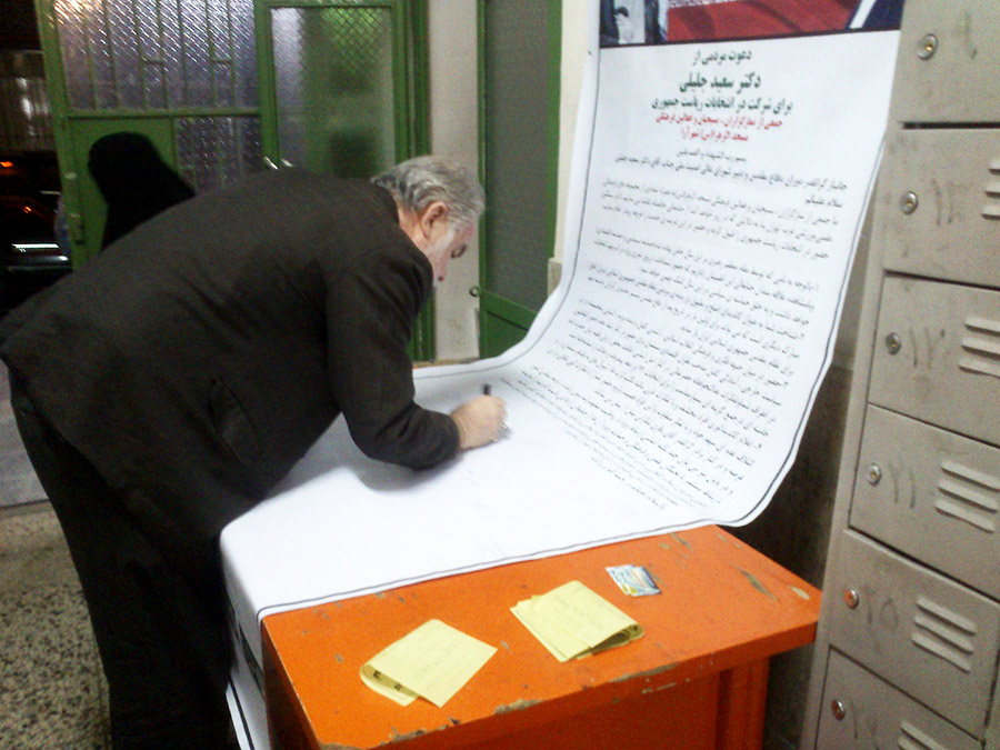 نمازگزاران مسجد الزهرا شهرآرا در تهران، روز گذشته با امضای طوماری از دکتر سعید جلیلی دعوت کردند تا با حضور در انتخابات این بار عظیم را بر دوش بگیرد. در این طومار آمده است: